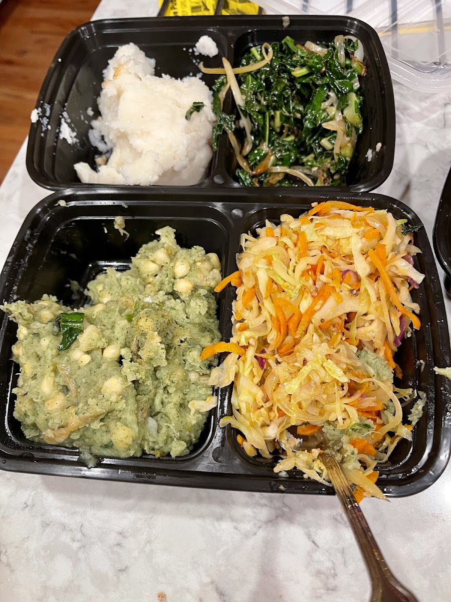 Absolutely delicious Kenyan food! We got the Ugali Greens with pork and the Mukimo and Cabbage with beef along with a side of samosas. Everything was so tasty and flavorful and came in large portions! We will definitely be back to try more off the menu. They’re super friendly and the remodeled front area is very welcoming. Takeout only as it’s very small with no dining area.